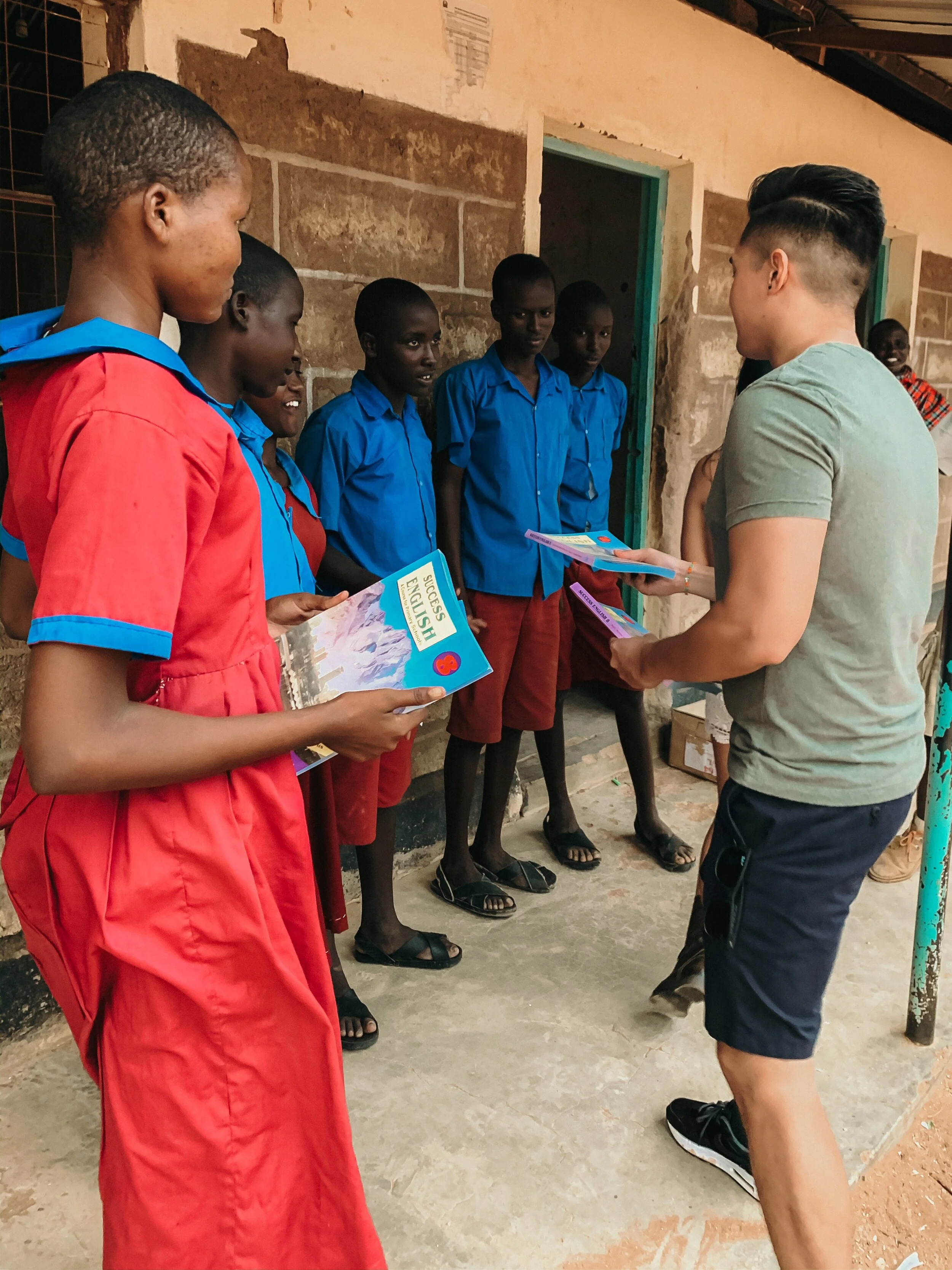 We visited the school to personally deliver our donations. It took three students to carry their huge box of new English books!